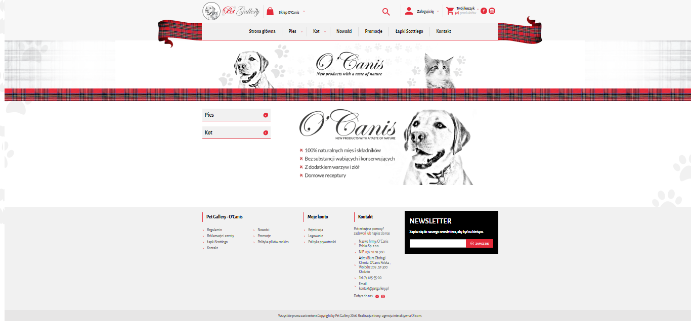 Dziś, w ramach poniedziałkowego cyklu „P jak portfolio”, mamy do zaprezentowania realizację sklepu internetowego dla firmy O’Canis Polska! Marka ta zajmuje się produkcją i sprzedażą wysokiej jakości pokarmów, przysmaków, środków pielęgnacyjnych oraz akcesoriów dla zwierząt.